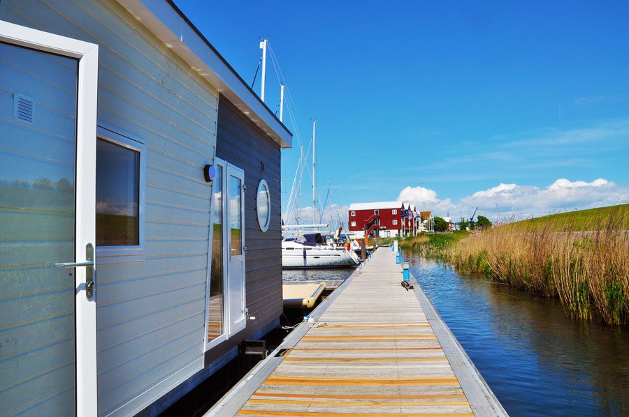 Pour ceux qui ne souhaitent pas dormir à bord de leur propre bateau ou pour les visiteurs, des chalets flottants uniques sont disponibles. Directement dans le port de Flevo Marina et à deux pas de la plage.